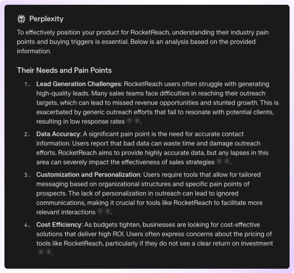 Get me the needs & pain points of Rocketreach so that I can position my product better.