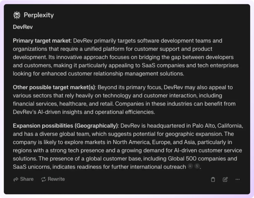 For the given company DevRev, highlight the company’s target market and geographical focus at the moment. If you do not find any insights related to this information, then do not make up the information. Ensure you backup your answer with relevant article reference or website references, do not do a derivative answer.